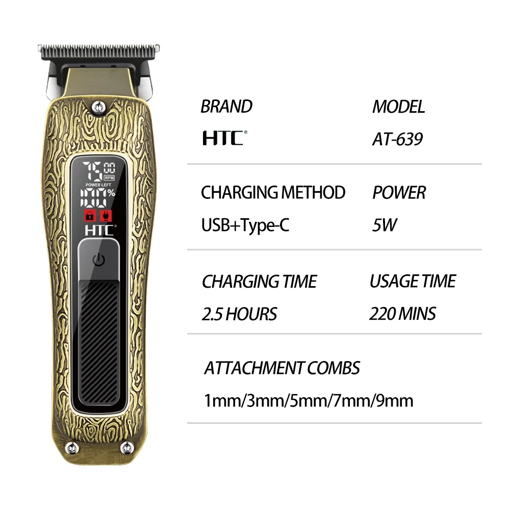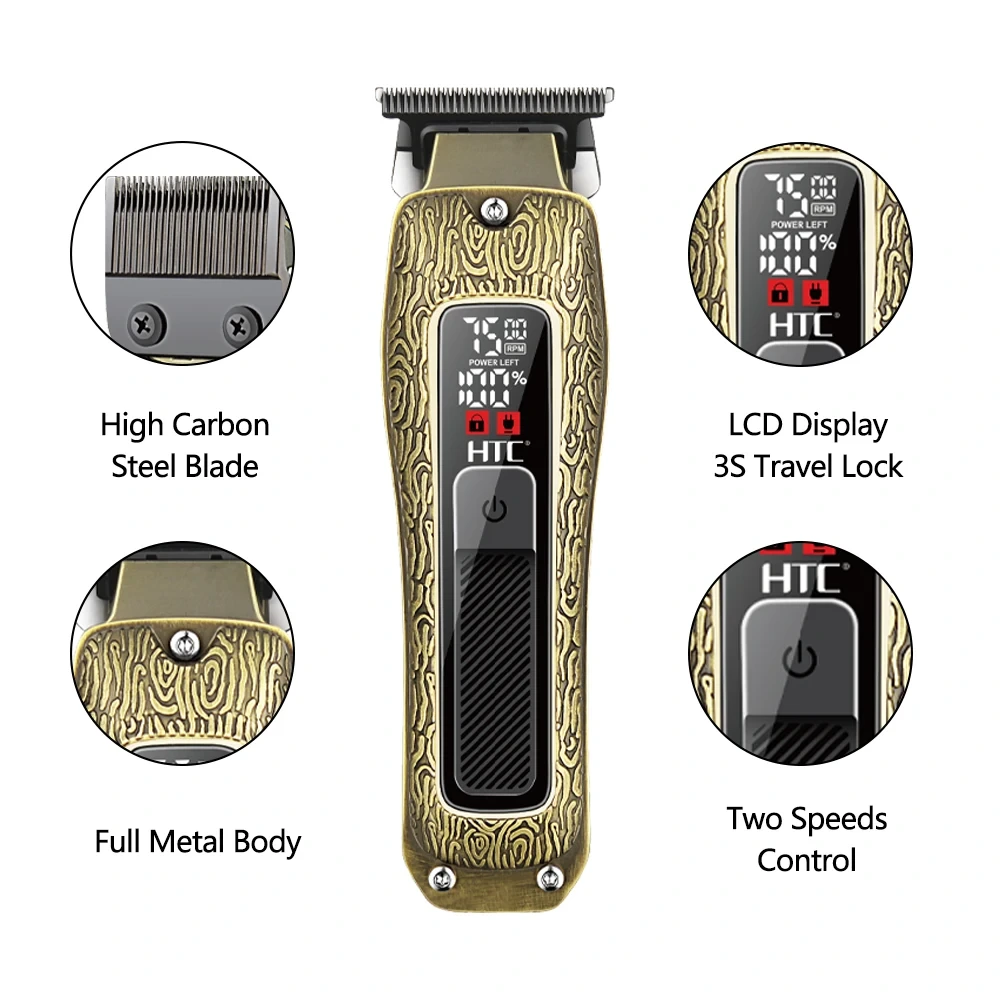 HTC AT-560 – Tondeuse Pro Lame Powder Metallurgy Écran LCD
