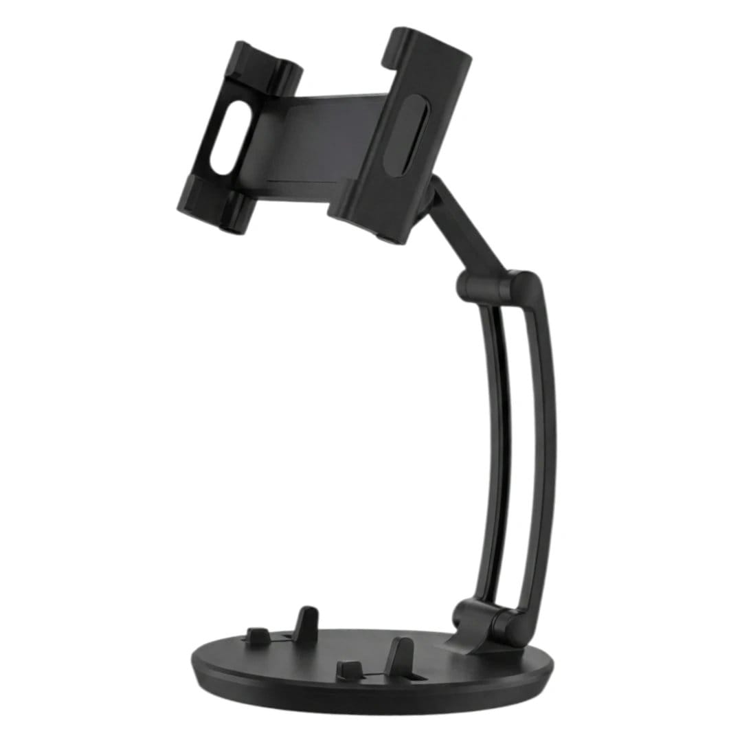 Stabilité garantie – La base large et lestée assure une stabilité totale, même quand vous touchez l’écran pour naviguer ou taper. Les patins antidérapants protègent votre meuble et empêchent tout glissement. Vous pouvez utiliser vos appareils en mode portrait ou paysage selon votre préférence.