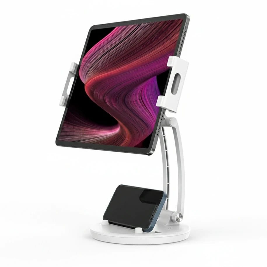 Support Double pour Tablette et Téléphone Réglable – Stand Bureau 2 en 1